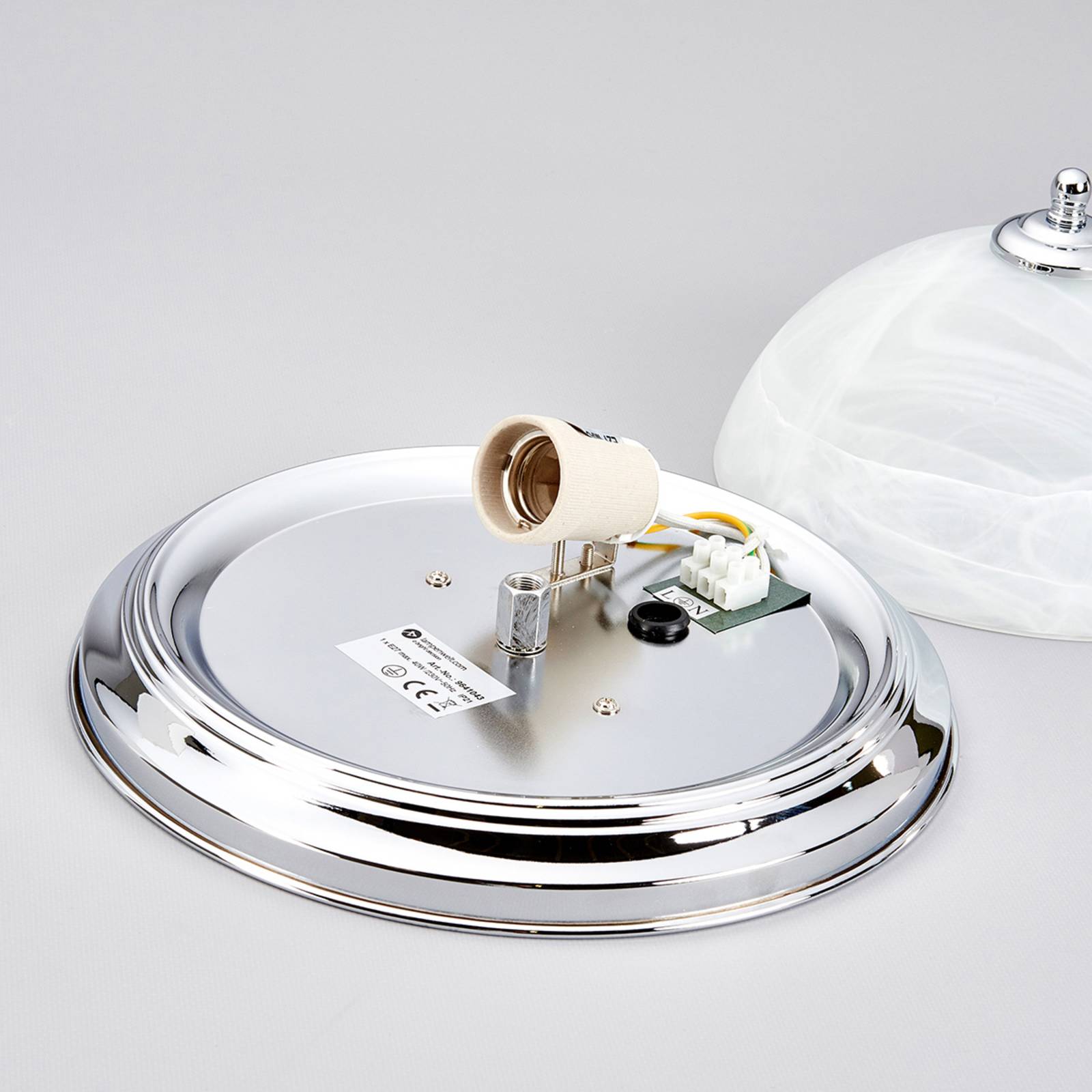 Lampada da soffitto Corvin bianca IP21 Questa lampada da soffitto Corvin sembra quasi antica. Il corpo bombato in vetro satinato leggermente strutturato viene completato da una struttura in metallo cromato, dando vita a una combinazione armoniosa. Corvin è dotata di indice di protezione IP21 ed è pertanto resistente alle gocce d'acqua. Di conseguenza la lampada da soffitto è adatta sia per l'installazione in corridoio o in soggiorno, sia per il bagno o altri ambienti umidi. Indipendentemente da dove viene posizionata, Corvin non manca mai di diffondere una nota classica.