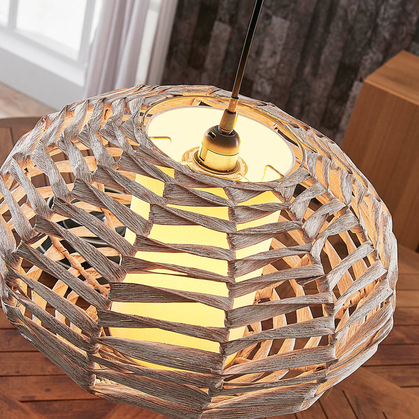 Lampada a sospensione Joas di bella forma, bianca, finemente lavorata, con paralume interno in tessuto Joas è una lampada dal carattere naturale che illumina l'ambiente con una luce morbida e calda. Il paralume esterno è realizzato con una struttura robusta in carta intrecciata, mentre quello interno, in tessuto bianco di forma cilindrica, filtra la luce rendendola morbida e omogenea. Nella variante bianca, questa lampada a sospensione si integra in ambienti diversi, che valorizza con armonia.