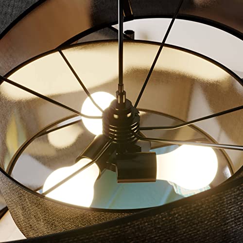 Lindby Lampada a sospensione 'Simaria' dimmerabile (Moderno) colore Nero, in Tessuto ad es. Soggiorno & Sala da pranzo (3 luci, E27) lampada a sospensione in tessuto, lampada da soffitto