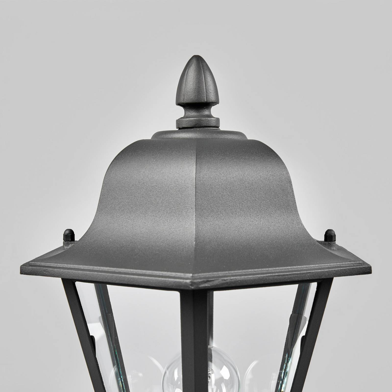 Lampioncino Edana con paralume a forma di lampione Edana è un lampioncino in stile classico che presenta note antico-nostalgiche. Struttura e paralume sono ricchi di dettagli, ad esempio il paralume ha un tetto sormontato da una sorta di punta. La superficie del metallo è stata laccata in grigio grafite e le lastre in vetro integrate trasparenti consentono alla luce di irradiare senza problemi. Il lampioncino Edana può essere installato su numerosi rialzi o basamenti e offre una pratica luce per orientarsi quando la luce del giorno è ormai svanita.