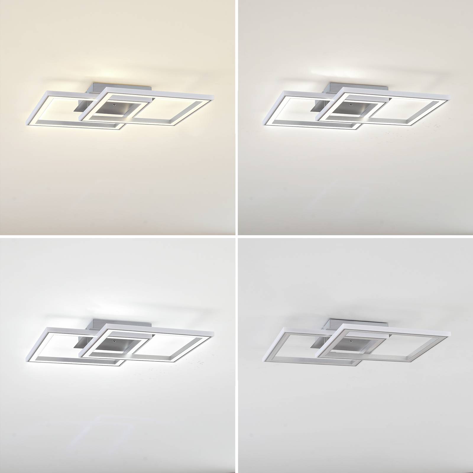 Lampada da soffitto quadrata a LED Lorina con funzione RGBW e telecomando inclusoQuesta formosa lampada da soffitto fa un'ottima figura in ogni casa. La lampada da soffitto ispira per il suo aspetto grazioso, che si adatta in modo eccellente a qualsiasi stile di interni. La lampada è dotata di una funzione di cambio colore che consente di regolare il colore della luce in base alle proprie esigenze. Può essere azionata in modo intuitivo tramite un telecomando, può essere regolata in base all'umore e ha i colori argento e nichel. Con questa lampada da soffitto potete contare sull'eccellente qualità del marchio Lindby. La lampada da soffitto si integra perfettamente in qualsiasi ambiente e crea un'atmosfera accogliente. Questa lampada da soffitto, per la quale si trova subito il posto giusto, completa l'immagine complessiva dei vostri interni. La lampada da soffitto emana un'atmosfera meravigliosa.- Funzione CCT (2.700 K - 5.000 K)- Funzione RGB