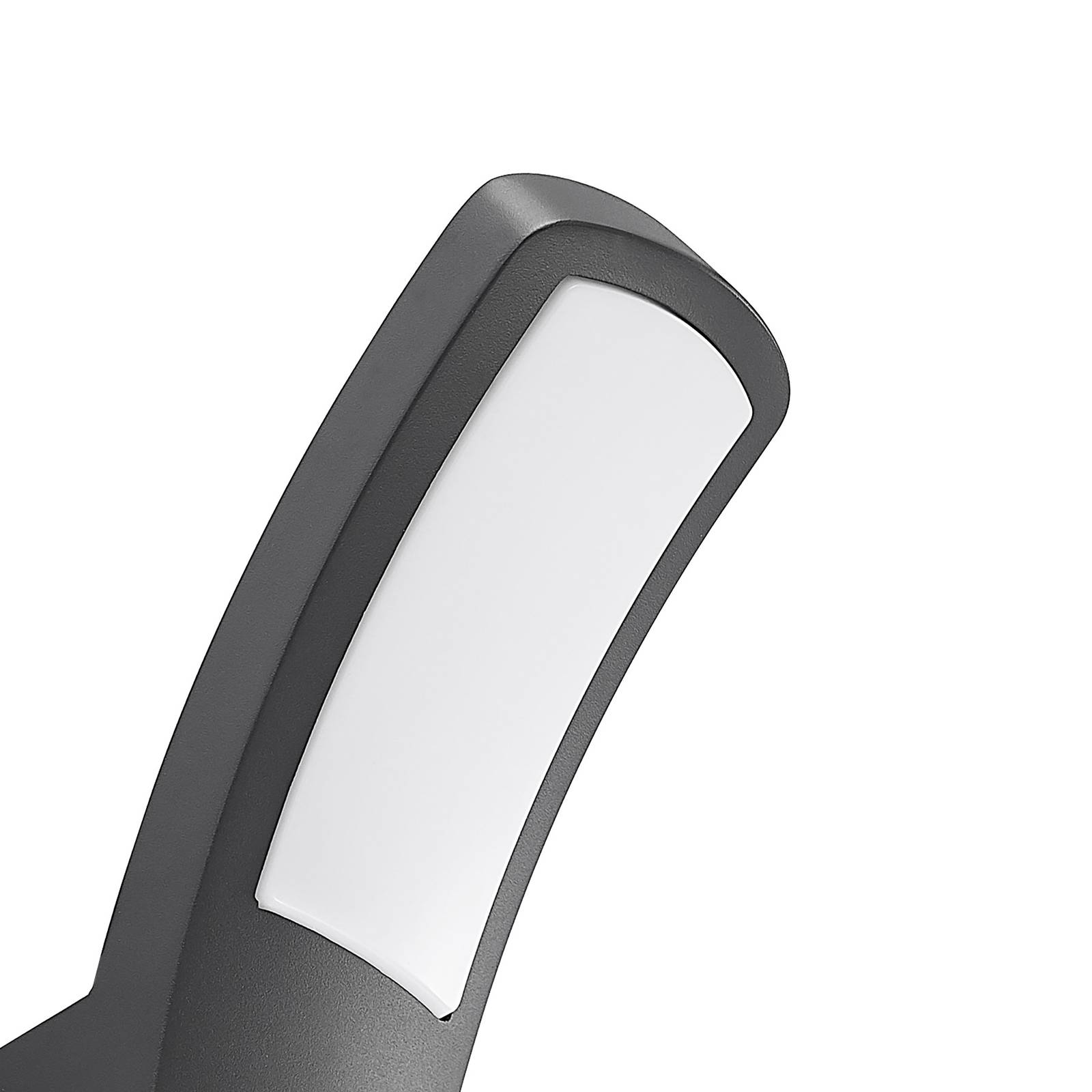 Applique a LED Moshe in alluminio grigio scuro con pratico sensore di movimento Se cercate un'applique moderna e pratica per gli esterni, Moshe non vi deluderà. Il corpo dell'apparecchio è in alluminio e ha un colore grigio scuro. Dietro un diffusore in plastica bianca sono installati permanentemente dei LED che generano una luce bianca calda. Il grado di protezione IP54 protegge l'applique a LED Moshe dalla polvere e dagli spruzzi d'acqua, rendendola ideale per un patio. È inoltre dotata di un pratico sensore che controlla la luce con l'aiuto del movimento. Dati tecnici sensore - Angolo di rilevamento 100° - Raggio di rilevamento 5-7m