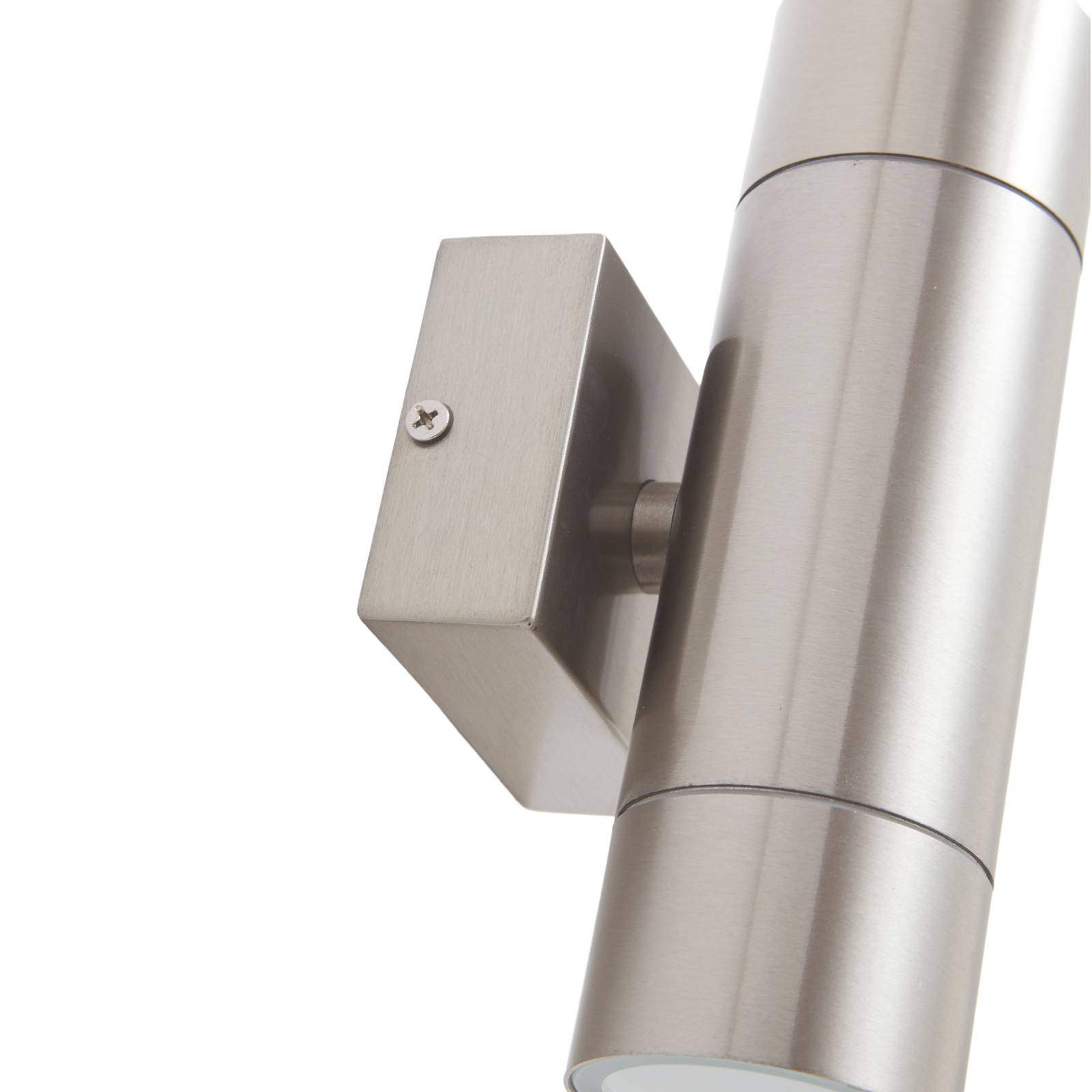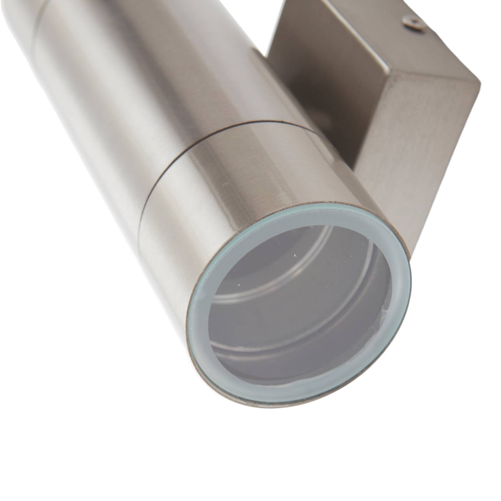 Myan, apparecchio da parete per esterni in acciaio inox con paralume cilindrico, alta qualità V4AMyan è un bellissimo apparecchio per esterni che può essere utilizzato su tutte le facciate e le murature immaginabili ed emette luce sia verso l'alto che verso il basso, senza quasi abbagliare, ma con una luce molto gradevole che può servire per l'orientamento, in modo da poter riconoscere per tempo i pericoli di inciampo, anche quando fuori è già diventato buio. Il corpo in acciaio inossidabile è stato realizzato in V4A di alta qualità ed è quindi considerato resistente all'acqua di mare, poiché questa superficie è molto ben protetta dalla corrosione.
