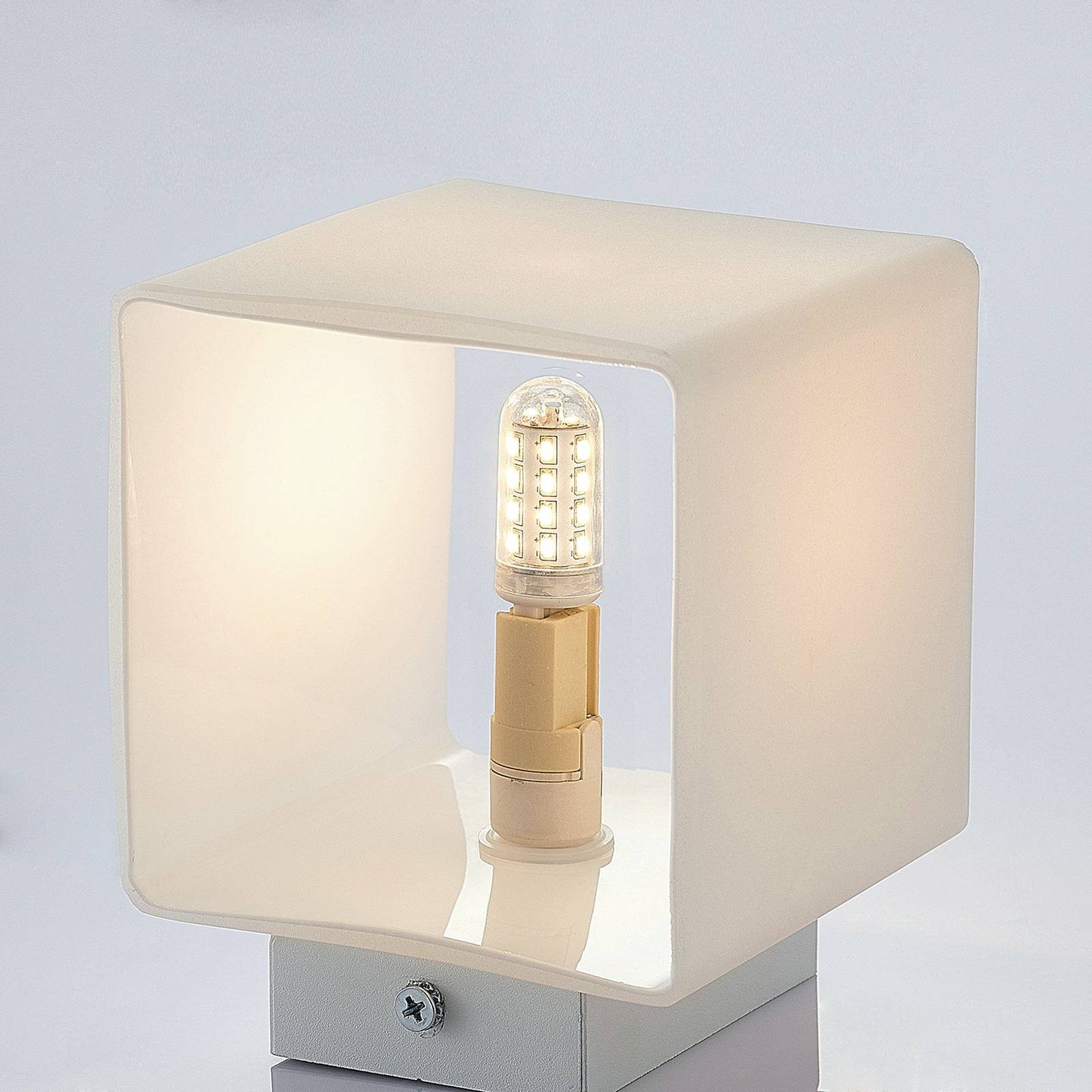 Applique di vetro bianco Nanda per una piacevole illuminazione in soggiorno L'applique Nanda di forma angolare ha un paralume di vetro bianco. La luce fuoriesce con un effetto caldo e morbido che sa subito creare un'atmosfera accogliente. Il design semplice e armonioso si intona senza problemi ad ogni tipo di arredamento.