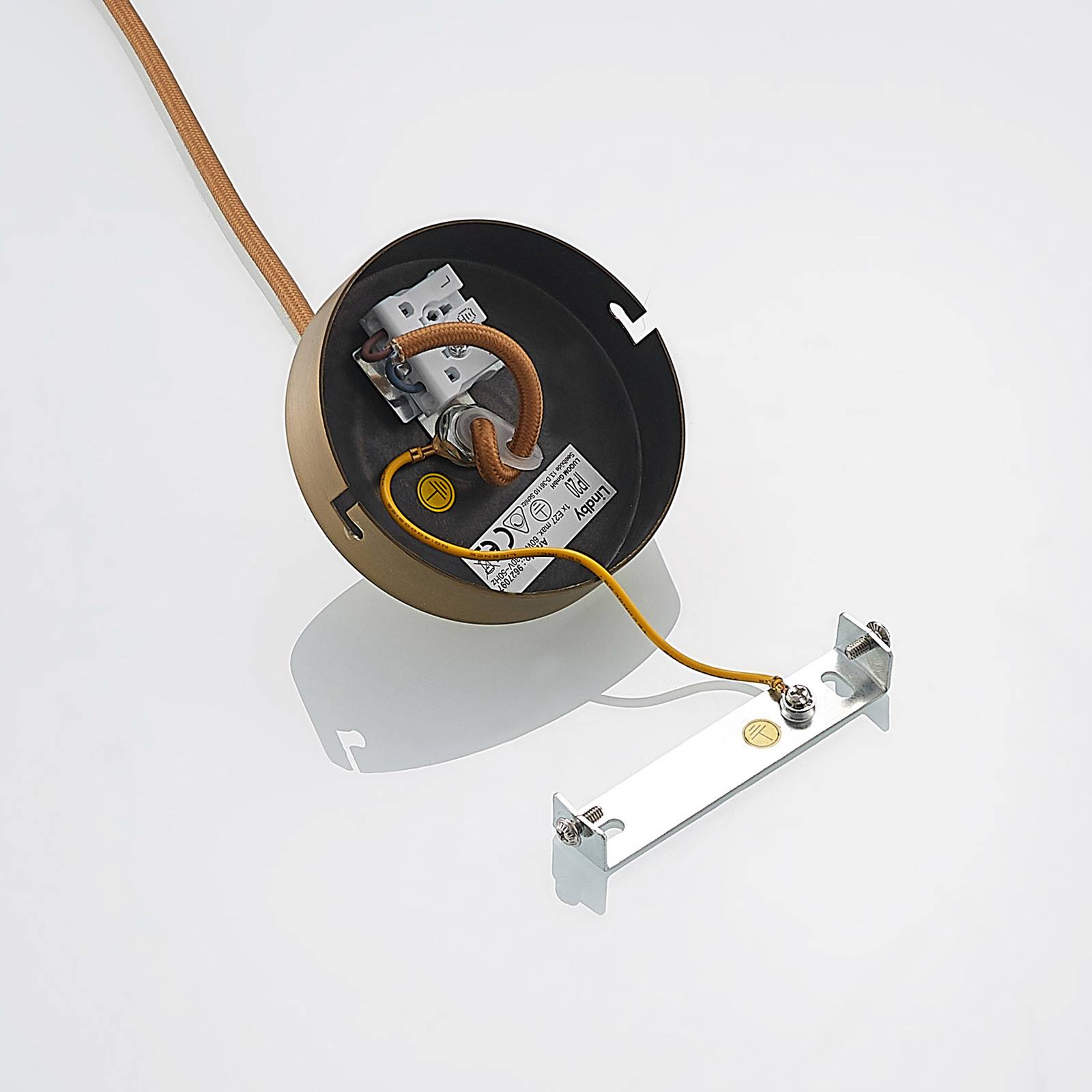 Elegante lampada a sospensione Noana con paralume sferico in vetro La lampada a sospensione Noana convince per il suo carattere elegante e solido. È costituita da una sottile sospensione in acciaio, alla cui estremità è appeso un paralume sferico in vetro opalino. All'interno di questo paralume è possibile inserire una lampadina E27, che produce la luce necessaria. Il contrasto cromatico tra il bianco opalino e l'ottone vecchio crea un'immagine complessiva attraente e completa il design chic della lampada a sospensione Noana. Si adatta particolarmente bene a un soggiorno o a una sala da pranzo e trova la sua collocazione perfetta, ad esempio, sopra un tavolo da pranzo.