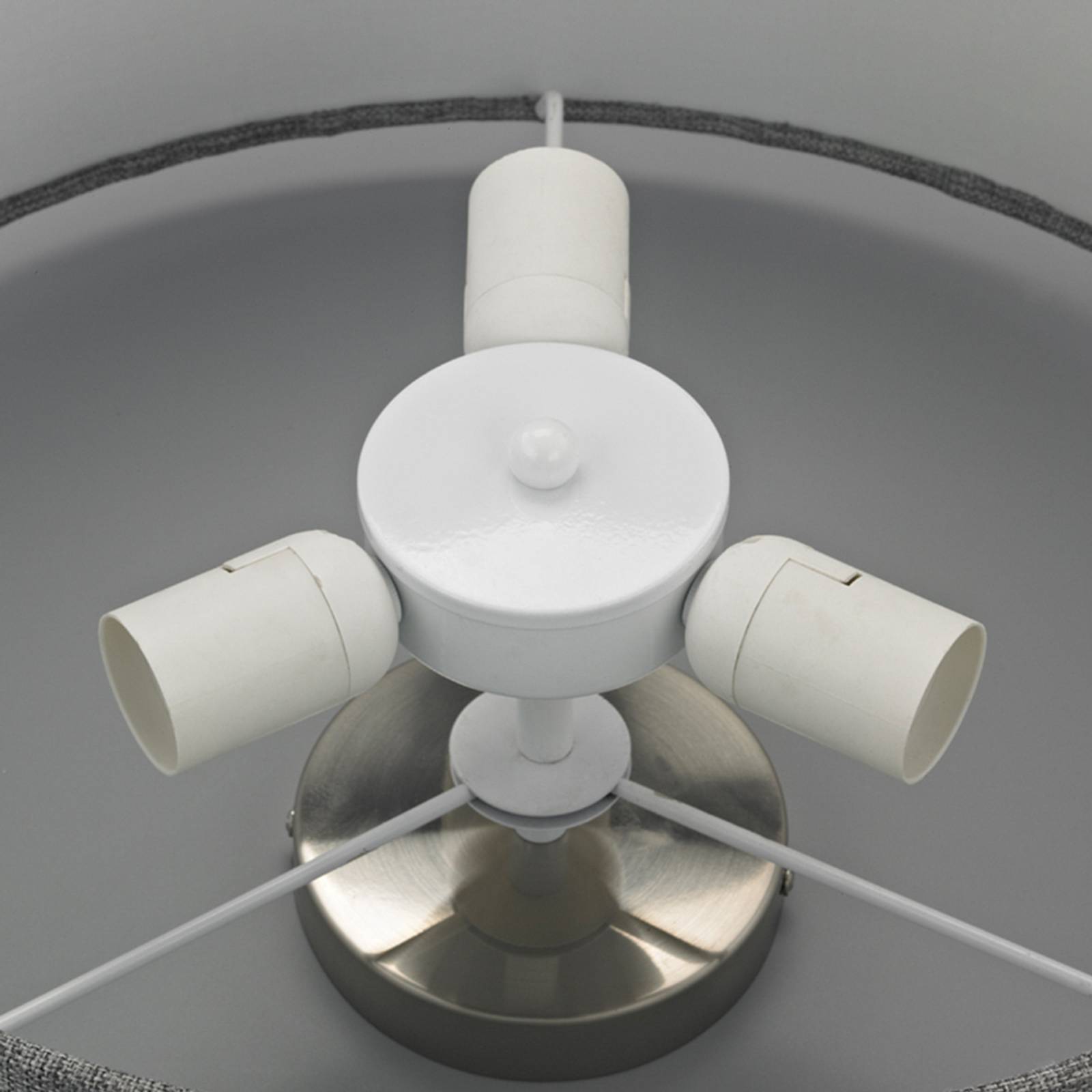 Lampada da soffitto in tessuto Pitta con diffusore cilindrico e fondo bianco Questa lampada da soffitto in tessuto è molto apprezzata per le sue linee sobrie e per il colore grigio scuro, perfettamente in linea con la tendenza del momento. Naturalmente, il diffusore in tessuto di colore grigio non è così traslucido come i colori chiari. Per questo, la luce si concentra soprattutto in basso. Il lato inferiore della lampada, però, non è aperto, ma è coperto con un diffusore in tessuto, che crea una luce molto morbida per un atmosfera calda e accogliente. Con i suoi tre portalampade E27, Pitta emana una luce gradevole e intensa allo stesso tempo. Il mercato offre un'ampia gamma di lampadine di diverso tipo con l'attacco adatto ai portalampade.