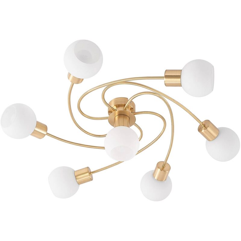 Plafoniera Lindby Ciala, a 7 luci, color ottone, vetro Questa lampada di alta qualità è un prodotto Lindby. Lindby rappresenta la massima qualità e soddisfazione del cliente. L'aspetto prezioso di questa lampada risulta convincente in qualunque stanza. Dal soggiorno alla sala da pranzo, corridoio, cucina o persino in bagno. Questa lampada si inserisce perfettamente in qualunque ambiente. Atmosfera confortevole: con questa lampada, in ogni stanza e per ogni evento, create un'atmosfera specialmente accogliente. La qualità di questo prodotto è stata controllata e verificata dai nostri esperti. In caso di domande sul prodotto, non esitare a contattare il nostro servizio clienti tramite il nostro profilo di venditore Manomano. Altri clienti hanno cercato: Lampada LED, lampada, plafoniera, lampadina da plafoniera, lampada a sospensione, luce a sospensione, lampada per bagno, lampada per sala da pranzo, lampada per soggiorno Plafoniera Ciala color ottone con forma a spirale di tendenza