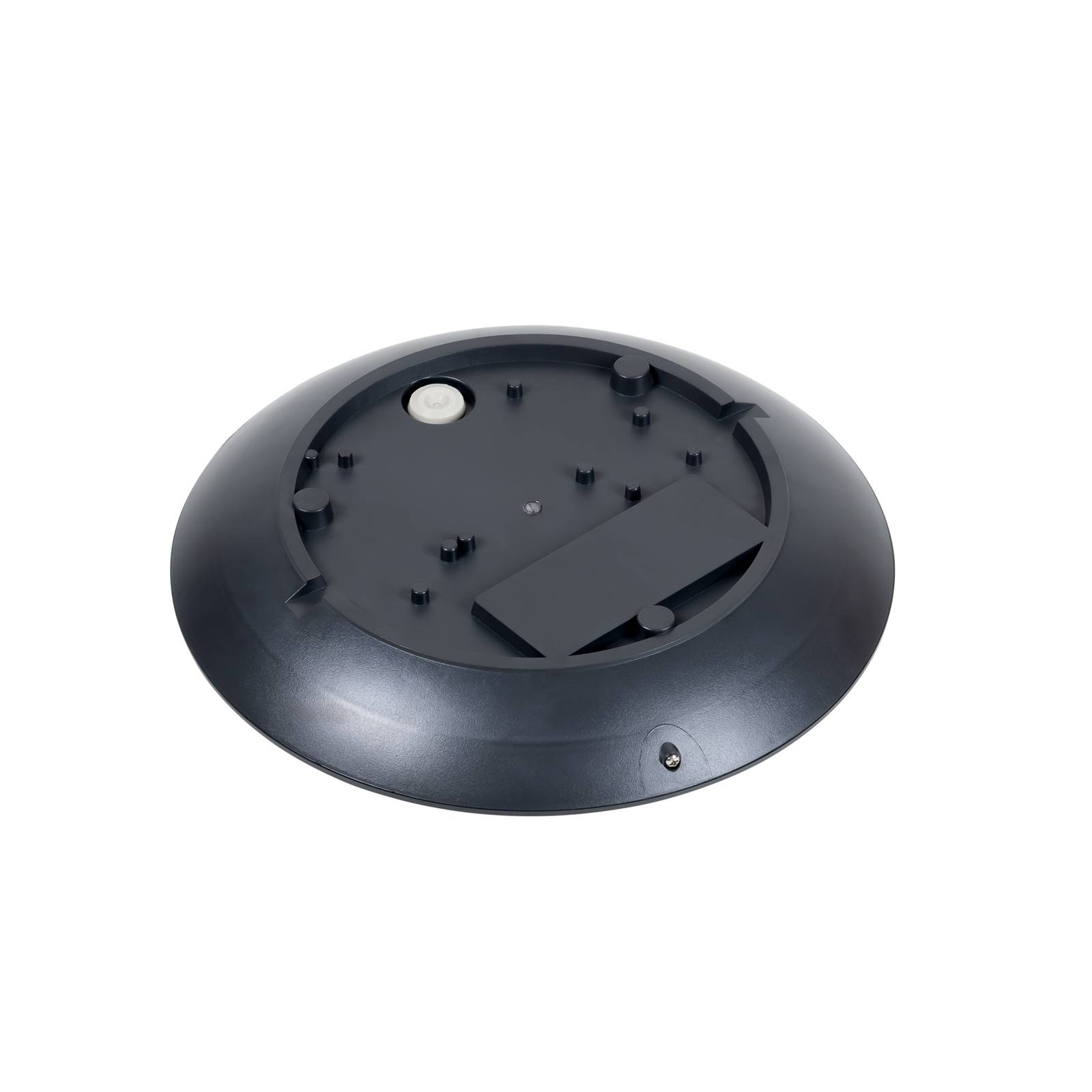 Plafoniera LED Naira grigia con diffusore bianco, anticorrosione, IP65 Naira è una plafoniera che si monta ovunque, anche sulla parete. La forma rotonda e la finitura grigio scuro sono neutre e sobrie. L'elevato grado di protezione IP65 assicura ottima resistenza a sporco e acqua. La lampada pertanto si monta senza problemi davanti ad ingressi, su terrazze e balconi. È possibile anche il cablaggio passante. La robusta costruzione di plastica è anticorrosione. Questo significa che la si può montare in zone costiere senza che subisca danni. Valida anche la resistenza all'urto (IK06), un requisito di robustezza importante per una lampada montata all'esterno. Dati del sensore: - Portata 12 m/6 m - Durata di accensione programmabile: 5 s/90 s/5 min/15 min - Altezza massima di montaggio 6 m - Angolo di rilevamento 30°/150°