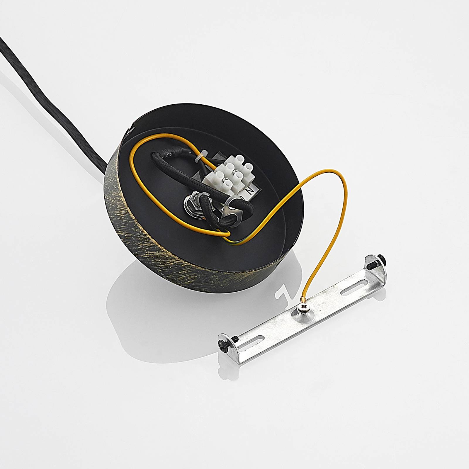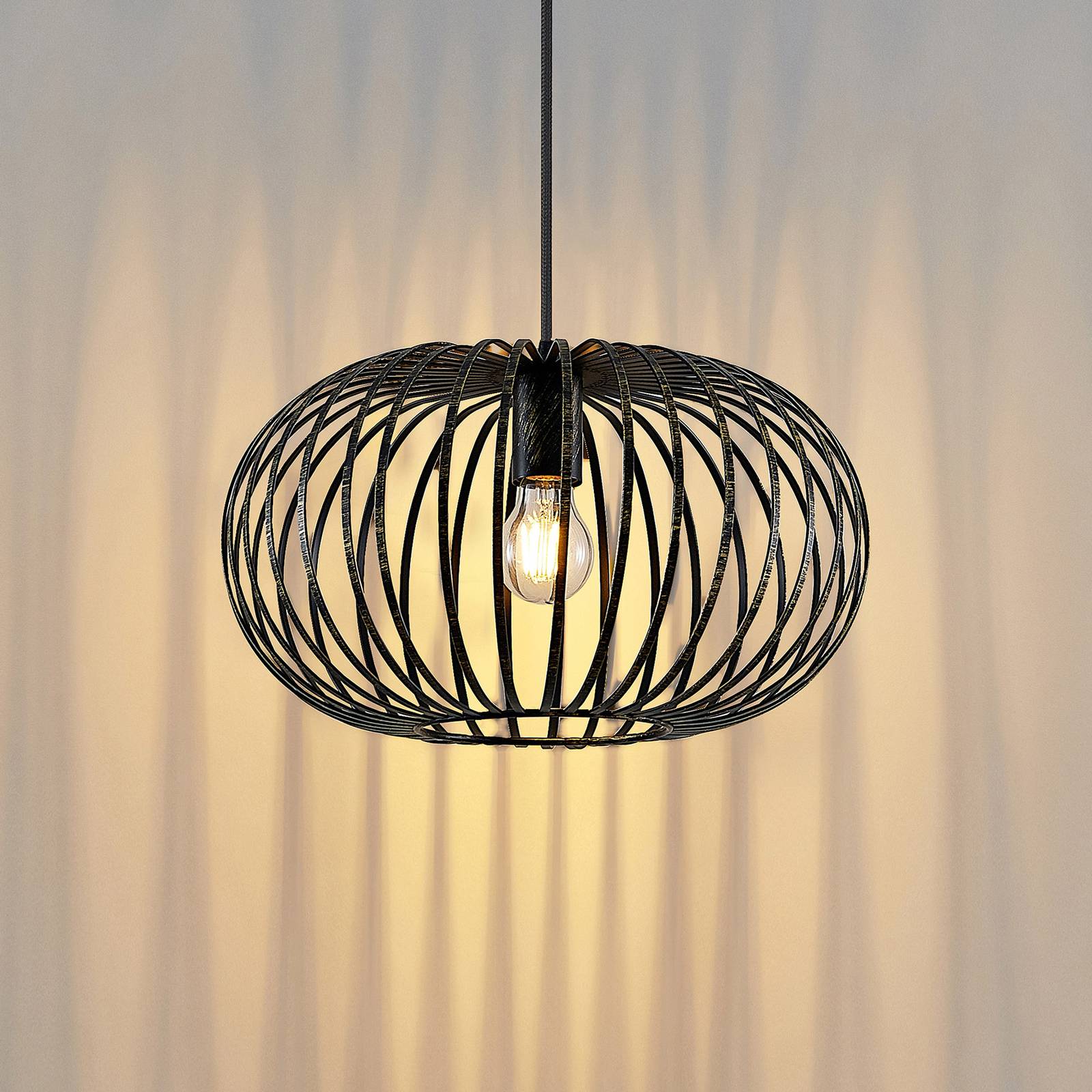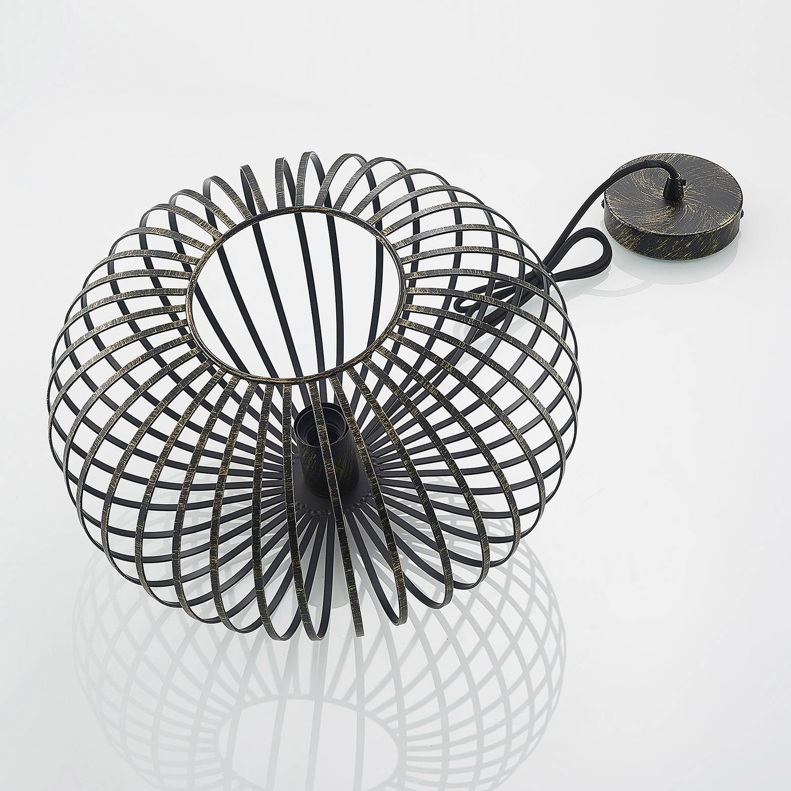 Lampada a sospensione Rosalea in ottone con paralume a gabbia di grande effettoOttieni ottime condizioni di illuminazione e un'atmosfera familiare in casa tua con la formosa lampada a sospensione Rosalea. La lampada permette di regolare la luminosità con un dimmer esterno secondo i propri desideri, ha un attacco E27 e sa convincere per la qualità dell'acciaio utilizzato. La lampada dal design moderno si adatta perfettamente alla sala da pranzo, al soggiorno o alla camera da letto. Con questa lampada si opta per la qualità comprovata del marchio Lindby. Il modello Rosalea è presentato nei colori nero e ottone e può fungere da elemento decorativo anche quando è spento.