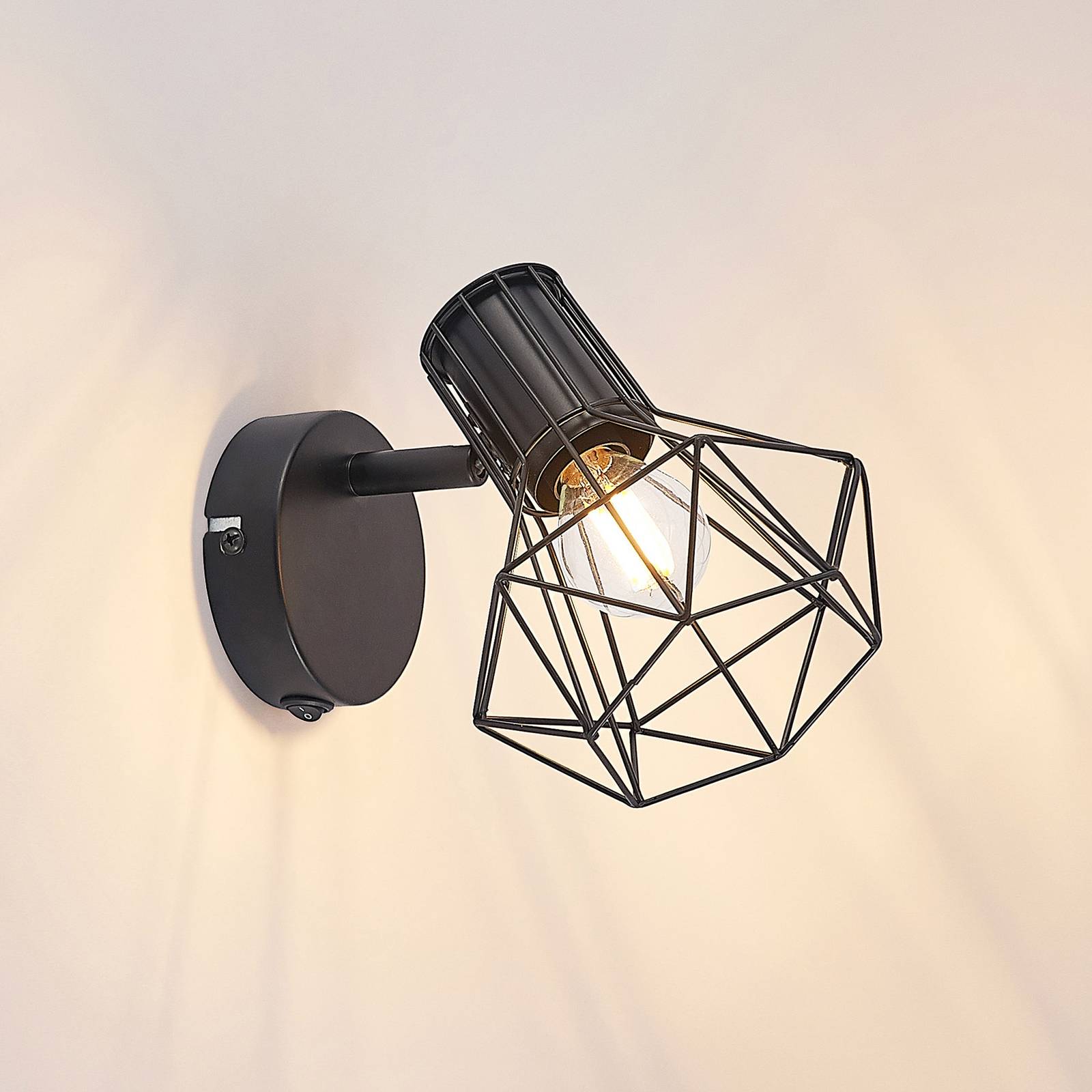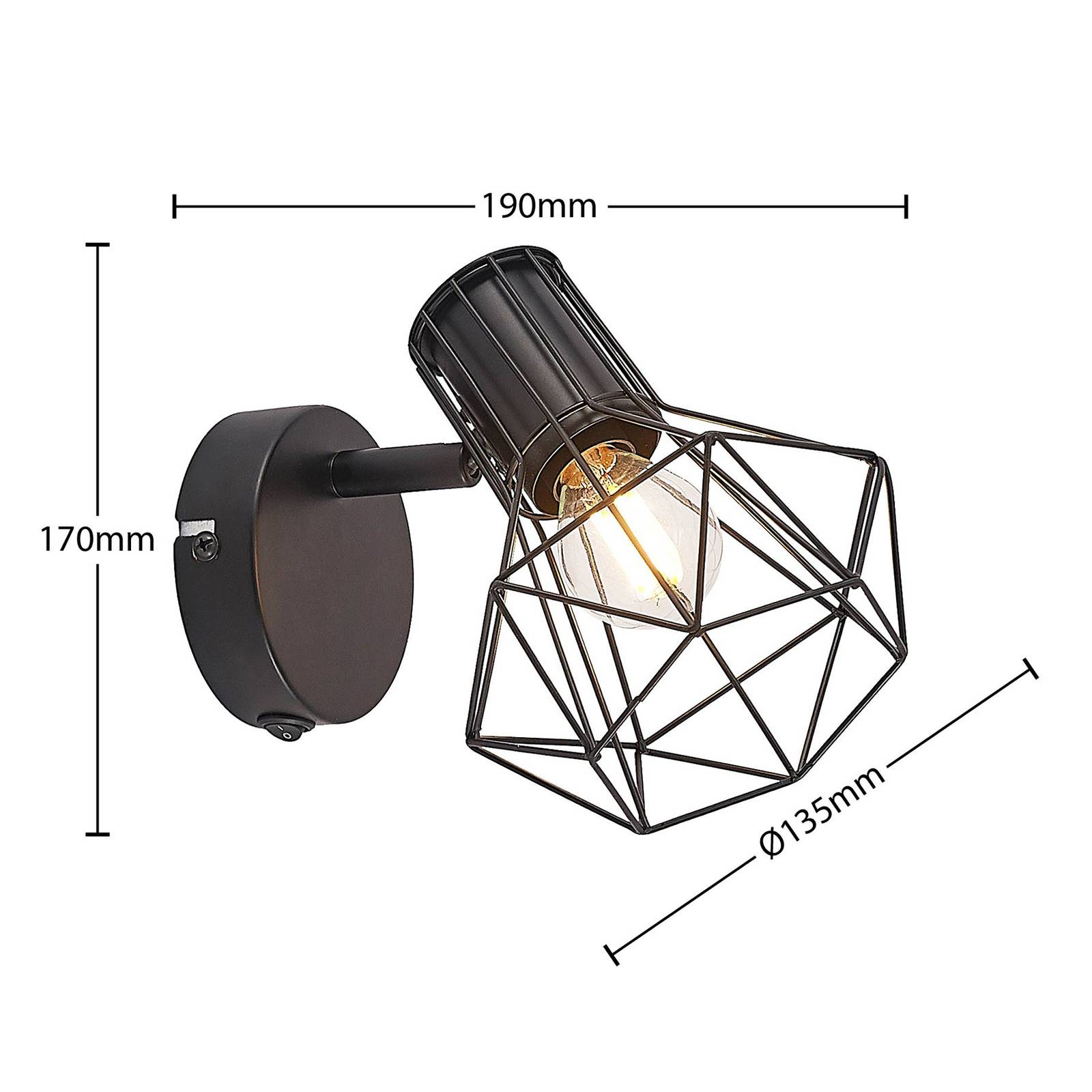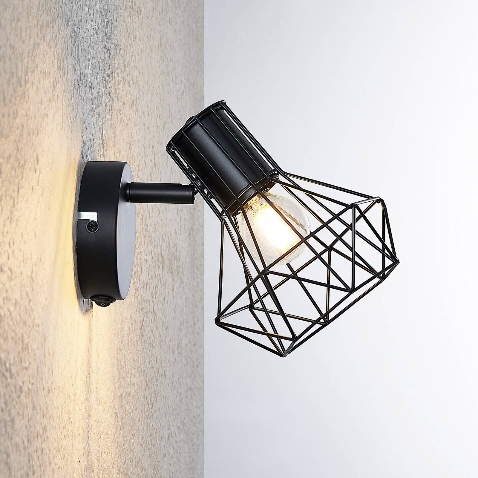 Faretto a gabbia nero Skandero dall'aspetto interessante Skandero ha un paralume a gabbia dalla forma interessante, visivamente molto traslucido, che incarna alcune qualità vintage. L'intero corpo dell'apparecchio, compresa la cornice e il supporto a parete, è realizzato in metallo e rifinito in nero, creando un aspetto elegante e di grande impatto. Il paralume, realizzato con montanti in metallo nero filigranato, può essere ruotato e orientato a seconda delle necessità per direzionare la luce in modo ottimale. La sorgente luminosa è visivamente molto presente e deve quindi essere scelta in modo appropriato, per cui le lampade a filamento LED nella lampada a incandescenza si adattano molto bene e sono comunque a risparmio energetico. Grazie ai sottili montanti del paralume, la luce risplende ad arte come un gioco di ombre sulla parete e nella stanza.