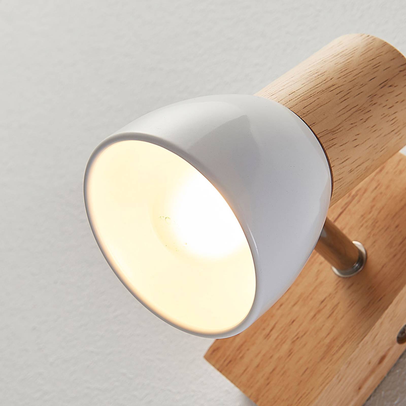 Thorin - faretto in legno con paralume in metallo bianco Thorin porta un tocco di naturalezza in ogni stanza, grazie al calore della struttura realizzata in legno. Questa caratteristica fa di Thorin la lampada ideale per un ambiente in stile country, sia moderno che classico. Il paralume, di forma quasi sferica, è realizzato completamente in metallo bianco. Per l'impenetrabilità di questo materiale, la luce viene convogliata tutta in avanti. Il faretto può essere installato sia a soffitto, sia a parete e può essere orientato a piacere grazie al giunto articolato.
