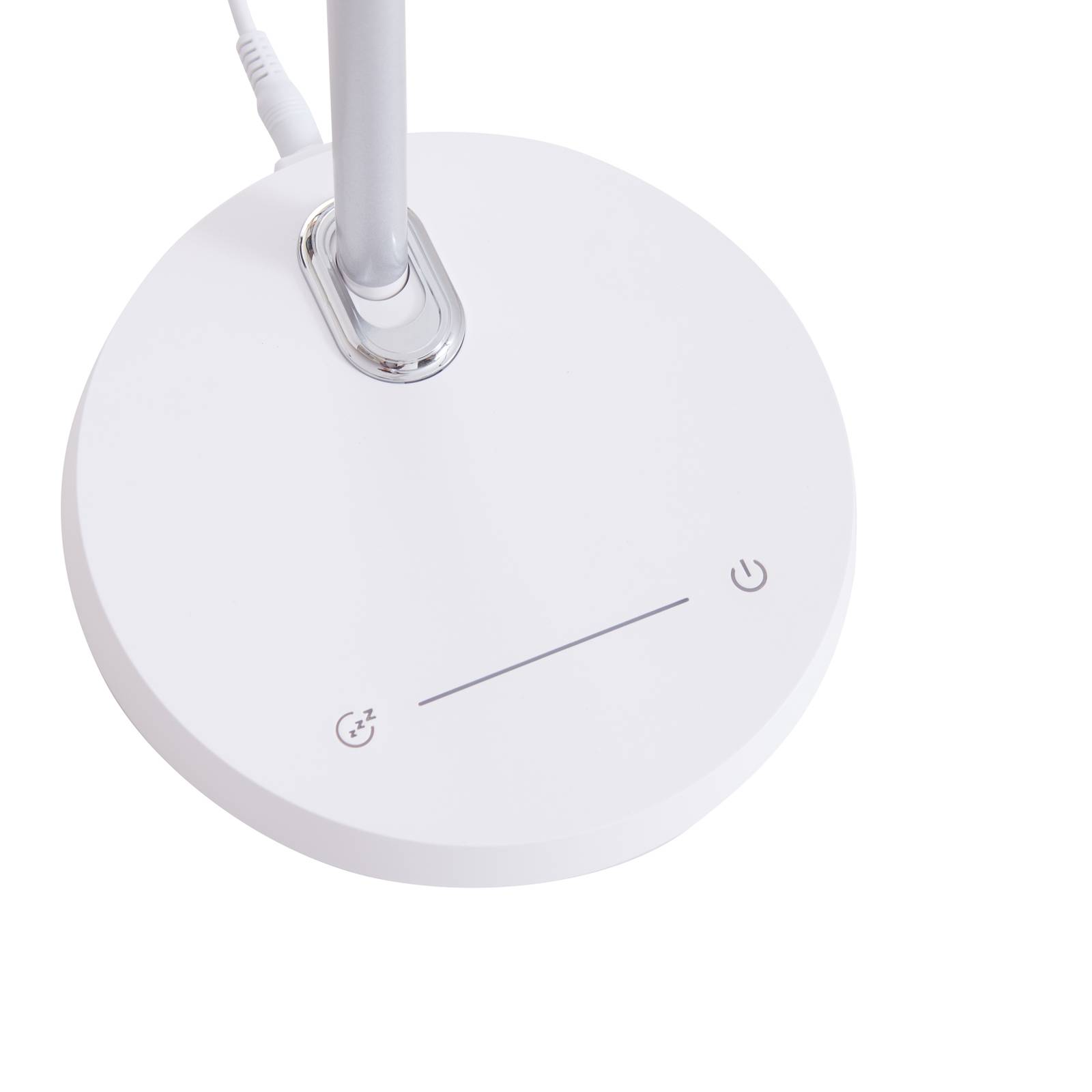 Lampada da tavolo a LED bianca Valtorin dal design sottile - perfetta per l'ufficio La combinazione di colori bianchi e il design semplice della lampada da tavolo a LED Valtorin la rendono un compagno perfetto per l'ufficio. È dotata di LED installati in modo permanente che generano un'illuminazione bianca universale. Inoltre, è dimmerabile e può fornire la giusta luminosità in qualsiasi situazione. È composta da una base rotonda e da due montanti che ne costituiscono la struttura. Il cavo di alimentazione esterno consente di riposizionarla facilmente in qualsiasi momento.
