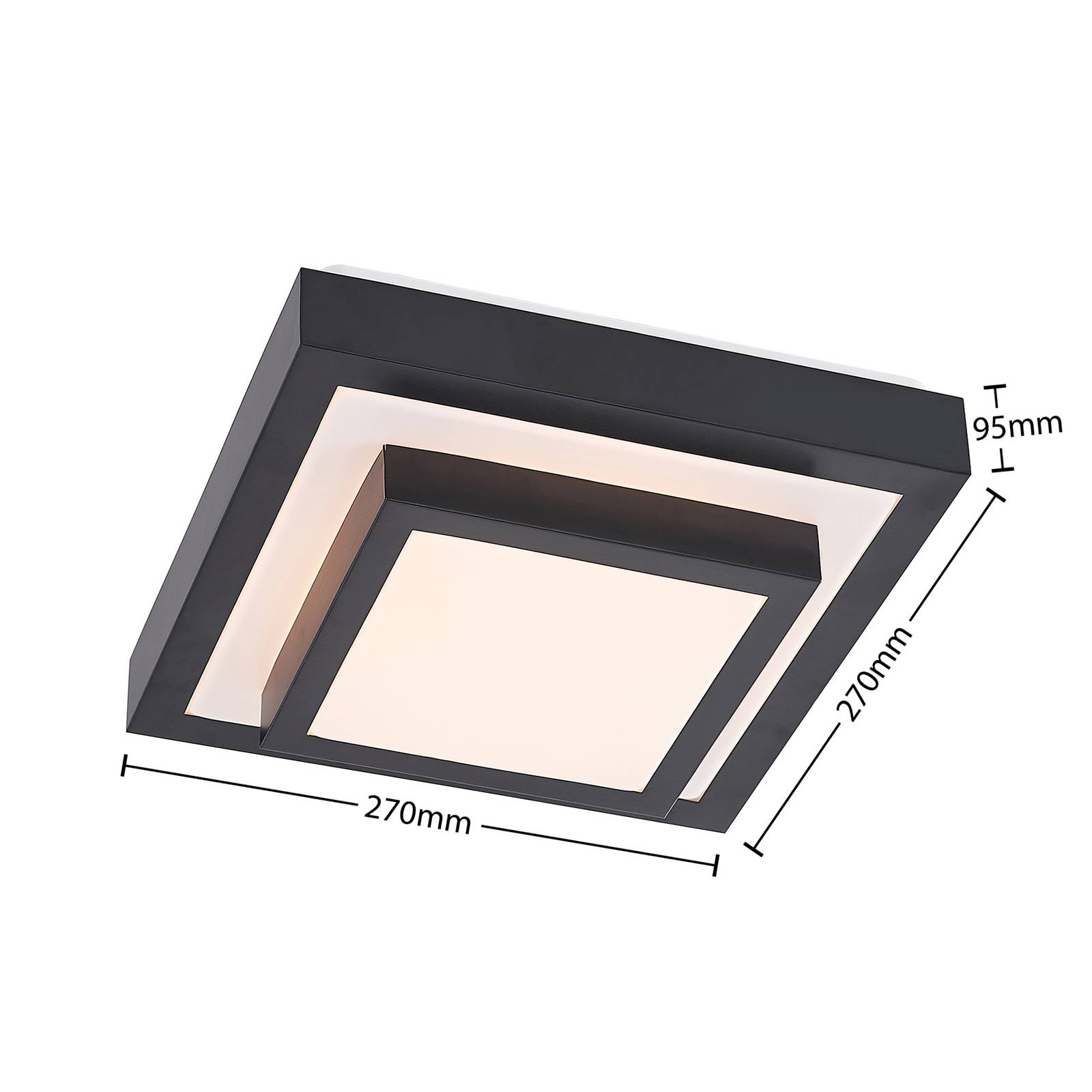 Plafoniera a LED Vilho in ferro e alluminio in bianco e nero La plafoniera a LED Vilho è perfetta per illuminare uno studio o una camera da letto. Il suo design è costituito da due cornici nere di diverse dimensioni, che sono state inserite l'una dentro l'altra. Gli spazi tra di loro sono realizzati in plastica e fungono da diffusore, dietro il quale si trovano dei LED fissi. La luce generata da questi è di un bianco caldo e genera un'atmosfera accogliente per gli interni. L'accattivante combinazione cromatica del bianco e del nero pone sottili accenti sulle pareti dell'appartamento e la stretta dimensione della plafoniera a LED Vilho trova il suo posto perfetto anche sui soffitti più bassi. Il design semplice si integra senza sforzo in un'ampia gamma di stili interni e valorizza l'arredamento.