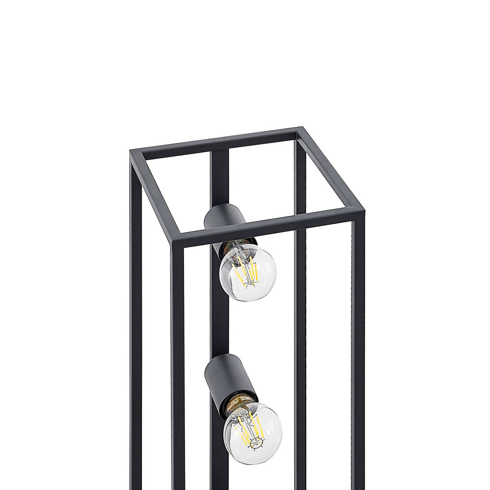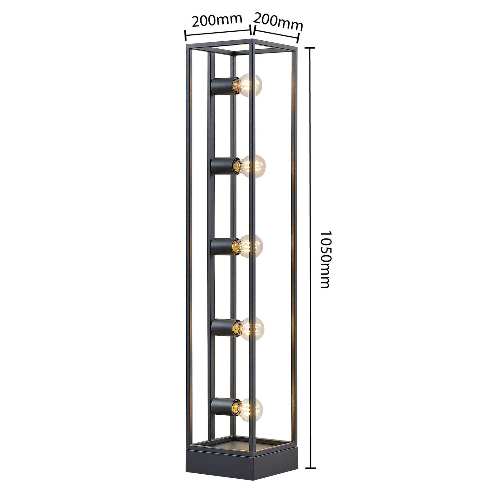 Lampada da terra a forma di cornice Xamara in acciaio nero, cinque lampade Questa lampada da terra assomiglia a una gabbia e convince con un certo look vintage che appare anche moderno. Una struttura rettangolare in acciaio costituisce il corpo della lampada da terra, che occupa una posizione speciale nel soggiorno ed è dotata di cinque lampade E27. Le cinque prese sono posizionate su un lato, in modo che le lampadine possano illuminare liberamente la stanza. Poiché non ci sono coperture o simili oltre alla cornice, le lampade sono parte integrante dell'aspetto e devono adattarsi bene al design generale. Per questo motivo le lampade con tecnologia a filamento sono particolarmente consigliate, perché non solo sono a risparmio energetico grazie alla tecnologia LED, ma hanno anche l'aspetto delle classiche lampade a incandescenza. Se lo si desidera, si possono scegliere anche con un colore chiaro extra caldo per aumentare il fattore di accoglienza nel soggiorno. Un interruttore a pedale nella linea di alimentazione facilita il funzionamento