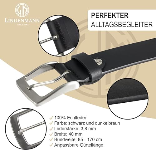 Lindenmann cintura uomo cintura in pelle di bufalo, 40 mm di larghezza e 3,5 mm - 4 mm di spessore, accorciabile, cintura, cintura in pelle, cintura jeans, XL, nero, Größe/Size:100