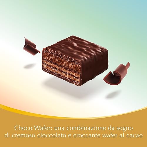 Una golosa pralina di intenso cioccolato fondente, che ricopre un croccante wafer al cacao e morbida crema di cioccolato fondente