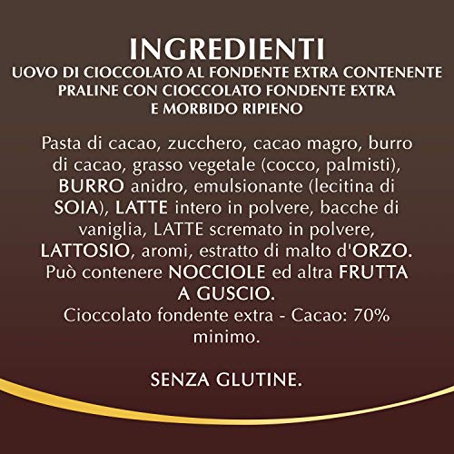 Uovo di Pasqua Lindt Lindor 70% cacao, uovo di cioccolato fondente 70% cacao formato 320g con all'interno quattro praline Lindor 70% cacao e una sorpresa Made in Italy.