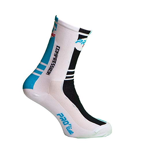 PRO' line Calze Calzini Ciclismo PROLINE Celeste Bianco Nero Compression Cycling Socks 1 Paio