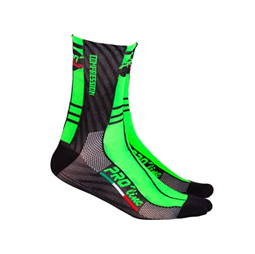 PRO' line Calze Calzini Ciclismo PROLINE Verde Fluo Nero Compression Cycling Socks 1 Paio One Size