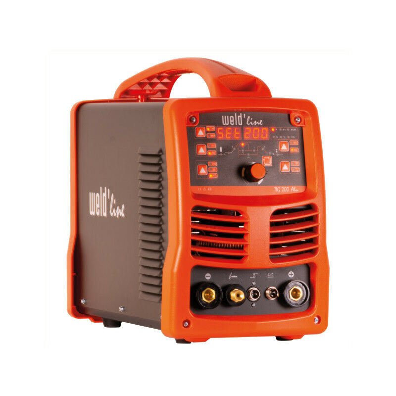 Weld'line - Saldatrice TIG portatile 8,0 KVA 230V Monofase - TIG 200 Alu Il Weld'Line 200 Alu è molto facile da usare grazie al suo display digitale. La Weld'Line 200 Alu ha una corrente continua e alternata e può quindi saldare tutti i metalli, compreso l'alluminio e le sue leghe. È dotato di un'accensione HF. Regolazioni semplici: pre-gas, pre-fusione, intensità, dissolvenza e post-gas, in corrente regolare o pulsata. È progettato per saldare tutti i tipi di elettrodi: rutilo, basico, acciaio inossidabile, ecc. Il Weld'Line 200 Alu è un inverter di saldatura TIG AC/DC con un controllo digitale avanzato ed efficiente. È attrezzato per la saldatura ad arco di argon ad onda quadra AC, la saldatura ad arco di argon pulsato AC, la saldatura ad arco di argon pulsato DC, gli elettrodi rivestiti di flusso DC MMA, La saldatura ad arco di argon a punti (DC, pulsata o AC) e la saldatura ad arco di argon ad onde complesse e altre operazioni AC/DC TIG, è generalmente usata per saldature delicate