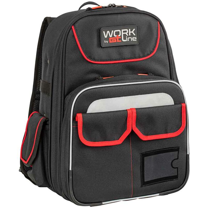 GT Line TOP 07 R è uno zaino porta utensili con tasche interne ed esterne per utensili, accessori e documenti, all'interno un pannello porta utensili bifacciale e zip lucchettabile. La maniglia è imbottita con spallacci regolabili e cintura addominale ed un' imbottitura posteriore per la schiena per un massimo comfort. Quattro piedini in gomma sul fondo.I prodotti sono venduti senza utensili. Caratteristiche tecniche Tasche interne ed esterne per utensili, accessori e documenti Pannello porta utensili bifacciale e zip lucchettabile Peso Netto 2,30 Kg Dimensioni Esterne 300 x 140 x 400 mm Accessori in Dotazione