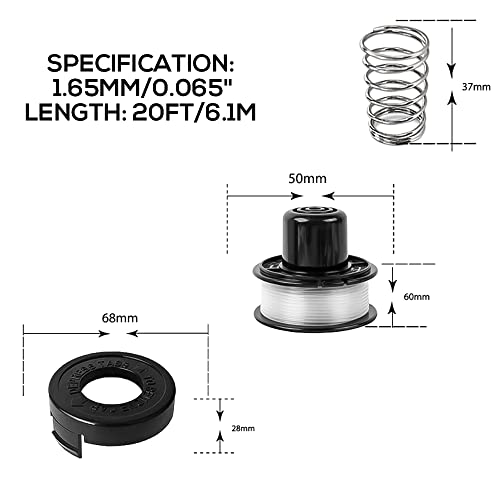 Dimensioni della bobina: bobina da 6,1 m autoalimentante con copertura per bobina. Dimensioni del prodotto: 61 x 52 mm. Compatibile con Black+Decker Weeder. La lunghezza della linea di trimmer fornisce una superficie di taglio più ampia. La linea resistente supporta un taglio rapido e una maggiore durata.