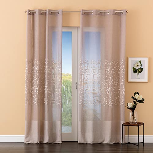 Linea oro Tenda per interni Finestra Balcone, Tenda con Occhielli Tenda a Pannello Tende a Vela Trasparente per Soggiorno e Camera da Letto Modello Beatrice Tortora cm 140x280