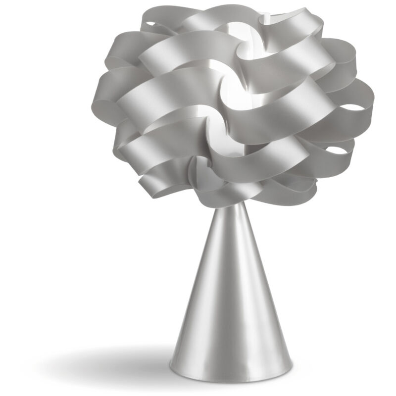 Collezione Cloud LINEE MORBIDE E AVVOLGENTI COME UNA SOFFICE NUVOLA Lampada da tavolo moderna a 1 luce realizzata in polilux silver con base a cono e cavo trasparente lungo 180 cm (di cui utile 150 cm). Il diffusore è realizzato da fogli in polilux, tutti intrecciati fra loro, che formano una sfera rotonda che emette una luce soffusa e delicata. Ben si adatta ad illuminare con grazia ed eleganza salotti, cucine, ingressi, camere da letto, uffici, dallo stile moderno e contemporaneo. Il Polilux, oltre a creare nell'ambiente un senso di leggerezza, è atossico, versatile, non ingiallisce nel tempo e di facile pulizia domestica. Disponibile in diverse misure e in varie finiture. Soffice come una nuvola baciata dai raggi del sole, dalle linee morbide e avvolgenti, le lampade della collezione Cloud creano eleganti e ricercate forme di luce di grande effetto scenico.