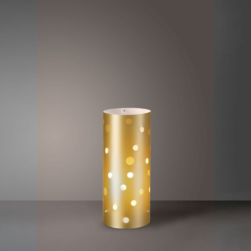 Collezione Pois ESSENZIALI E STRAVAGANTI Lampada da tavolo a 1 luce in polilux oro. Disponibile in tanti colori, si integra perfettamente con qualsiasi arredamento, contemporaneo valorizzandone l'insieme, per un risultato davvero brioso e vivace. Il bicolor diventa divertente e pop nelle lampade della collezione Pois, essenziali nella sagoma ma stravaganti nell'estetica.