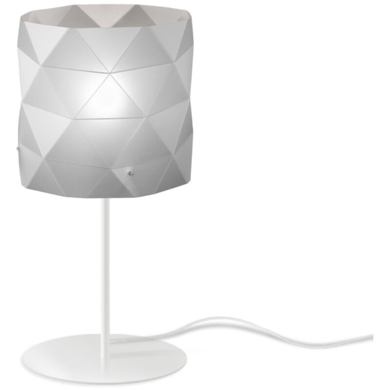 Collezione Prisma ISPIRATA ALL' ARTE E AI MOSAICI Lampada da tavolo moderna a 1 luce realizzata in polilux silver, dotata di cavo trasparente regolabile lungo 180 cm. Impreziosita da sfaccettature piramidali, trae ispirazione dall'arte, dai mosaici pavimentali geometrici, le forme triangolari, incise della Prisma, giocano con il concetto di luci e ombre per ricreare l'effetto a mosaico. Disponibile in diverse misure e finiture di colore, con un forte impatto visivo donerà eleganza e raffinatezza ad ogni ambiente moderno e contemporaneo.