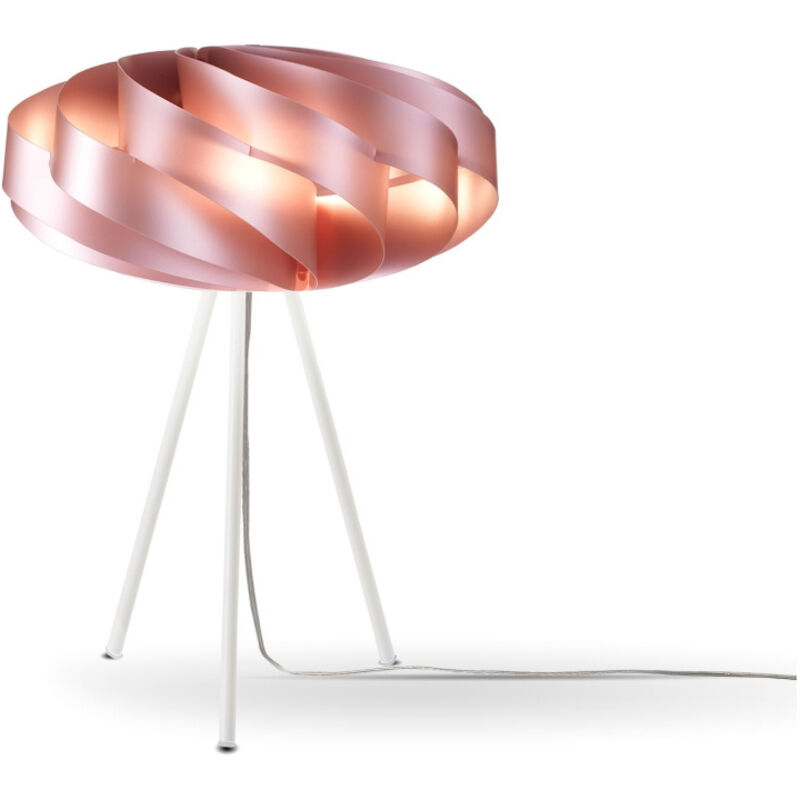Collezione Flat DELICATA E DISTINTA Lampada da tavolo con treppiedi moderna a 1 luce realizzata in polilux rosa metallico, dotata di cavo trasparente lungo 180 cm e base in metallo. Linea moderna e leggera, grazie al design minimal della spirale che con l' avvolgersi dei fogli in polilux crea infiniti giri intorno ad un punto, dona all'ambiente armonia ed eleganza. Ben si presta ad illuminare ed arredare il living abitativo o l' ambito commerciale dallo stile moderno e contemporaneo. Disponibile in diverse finiture e molteplici misure. Sorella della collezione Globe, la lampada Flat incarna un ideale matematico di bellezza. Un solido scomposto ma regolare, delicato e distinto.