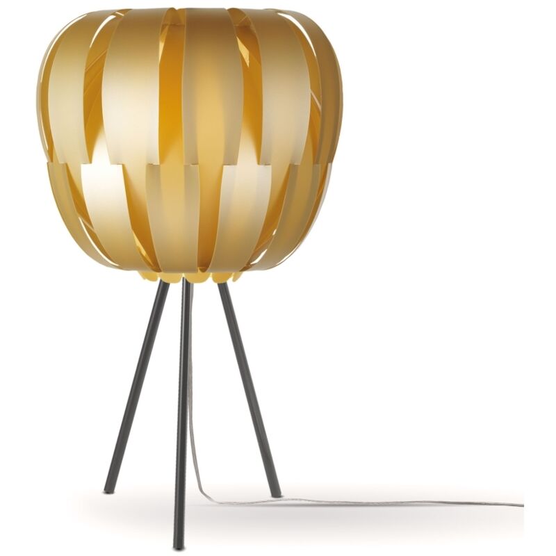 Collezione Queen FORME MAESTOSE E LUSSUOSE Lampada da tavolo moderna a 1 luce con treppiede in metallo realizzata in polilux oro dotata di cavo trasparente lungo 180 cm. Composta da 24 strisce, posizionate in modo tale da sovrapporsi parzialmente l'una all'altra, dando un effetto alla luce fortemente espressivo e glamour. Questa elegante lampada iconica si distingue per la sua forma maestosa e lussuosa, che funge da fulcro visivo di ogni stanza e andrà ad illuminare con grazia ed eleganza ambienti moderni e contemporanei. Disponibile in diverse misure e finiture di colore.