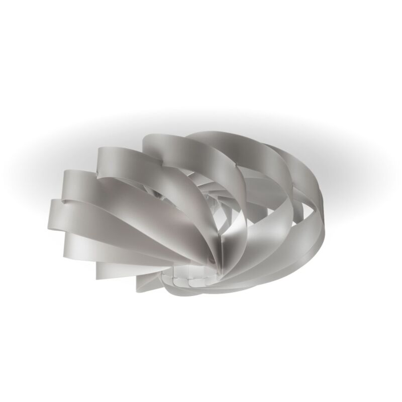 Collezione Flat DELICATA E DISTINTA Lampada da soffitto moderna a 1 luce realizzata in polilux silver. Linea moderna e leggera, grazie al design minimal della spirale che con l' avvolgersi dei fogli in polilux crea infiniti giri intorno ad un punto, dona all'ambiente armonia ed eleganza. Ben si presta ad illuminare ed arredare il living abitativo o l' ambito commerciale dallo stile moderno e contemporaneo. Disponibile in diverse finiture e molteplici misure. Sorella della collezione Globe, la lampada Flat incarna un ideale matematico di bellezza. Un solido scomposto ma regolare, delicato e distinto.