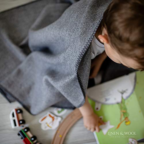 Linen & Cotton Morbido e Caldo Doppia Faccia Coperta Bambini Copertina Neonato Prima Coperta Santino - 100% Lana Merinos Superfine, Grigio (90 x 140 cm) per Carrozzina Culla Passeggino Lettino Viaggio
