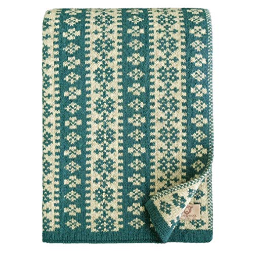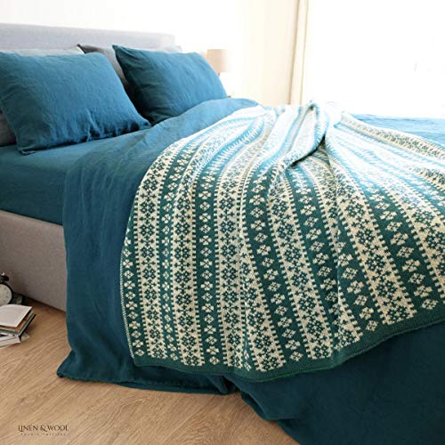 LINEN & COTTON Morbido e Spesso Plaid/Copriletto/Coperta a Maglia Arctic - 100% Pura Lana Neozelandese, Turchese Blu (130 x 180cm) Coperte Estive Invernali per Letto Divano Singolo/Matrimoniale