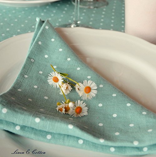LINEN & COTTON, Set di 4 Tovaglioli ANTEA, 100% Lino Lavato - Blu, A Pois Bianchi (42 x 42cm)