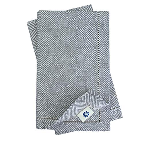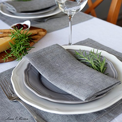 LINEN & COTTON Set di 4 Tovaglioli Scandi con Motivi Nordico, 100% Lino - 44 x 44cm (Grigio)