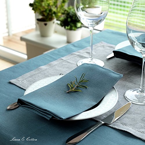 LINEN & COTTON, Set di 4 Tovaglioli in Stoffa CAERULA, 100% Lino - Blu (47 x 47cm)