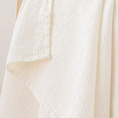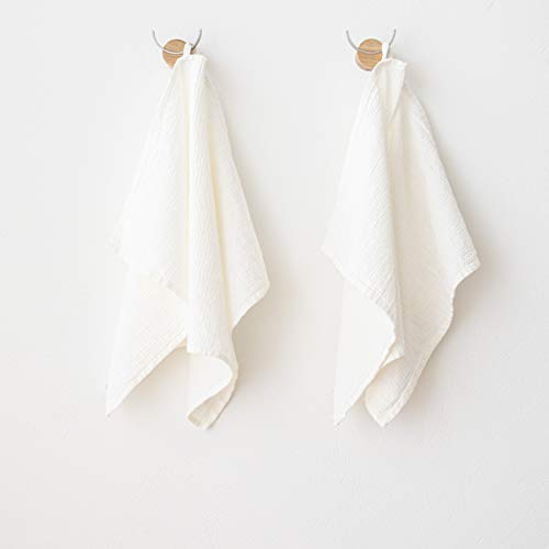 LinenMe Set di 2 Asciugamani in Lino e Cotone Wafer Bianco Panne 42x68cm, Realizzato in EU
