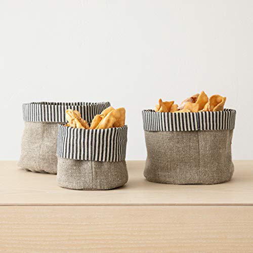 LinenMe Cesto in Lino e Cotone Nero a Strisce Jazz, Large (25 x 20 cm)