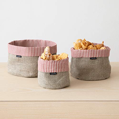 Questi vivaci cesti in lino sono perfetti per conservare biscotti, patatine, noci o pasta e, cosa più importante, consentono un veloce e facile accesso alle tue cose buone! Realizzato in puro lino e decorato con una striscia sul bordo.