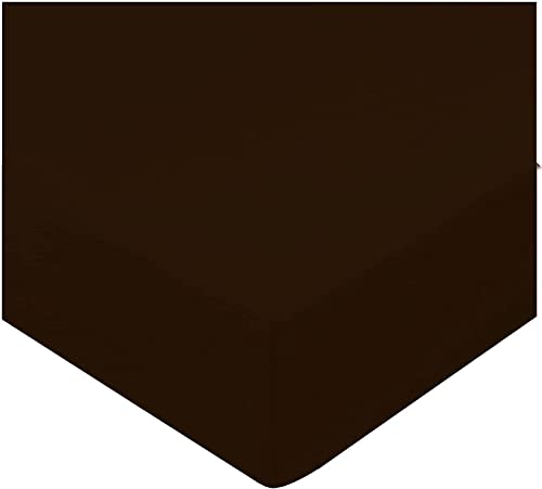 Linens World - Lenzuolo con angoli, in percalle di cotone, profondo 30 cm, 180 fili, non stirabile, Cotone, cioccolato, King