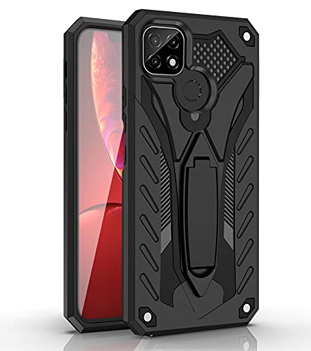 LINER Cover per Armatura Realme C21, [Militare Anti-Caduta] Cornice Paraurti in Silicone Morbido Super Robusto Custodia, con Supporto Pieghevole Kickstand - Nero