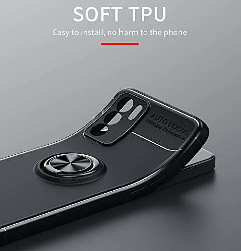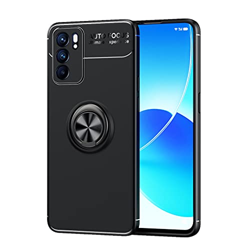 LINER Cover per Oppo Reno 6 5G (Reno6 5G), Protettiva Custodia con 360° Anello Supporto, Ultra Sottile Silicone TPU Bumper Antiurto AntiGraffio Case per Oppo Reno 6 5G (Reno6 5G) - Nero/Nero