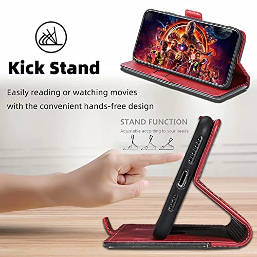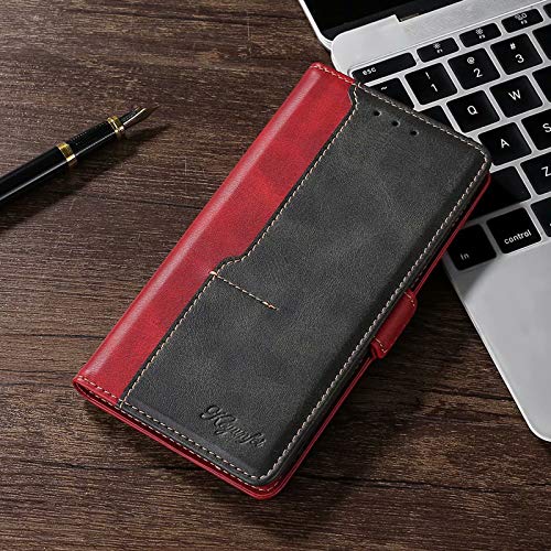 LINER Cover per Realme 8 PRO/Realme 8 4G, Flip Caso Custodia Pelle PU con [Bicolore] [Funzione Stand] [Slot per Schede] [Magnetica] [Silicone TPU] per Realme 8 4G / Realme 8 PRO, Rosso