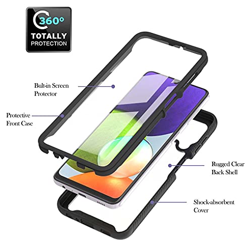 Liner Cover per Samsung Galaxy M22 / Samsung Galaxy A22 4G, [Protezione Schermo Integrata] Custodia Trasparente Full Body Antiurto Rigida PC Soft TPU Sottile Silicone Staccabile Cellulare Case - Nero