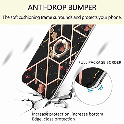 LINER Cover per Xiaomi Poco X3 PRO/Poco X3 NFC, Custodia Protettiva Ultra Sottile ed Elegante in Silicone TPU Flessibile, Glitter Marmo Cover Antiurto con 360° Anello Supporto - Fiore Nero