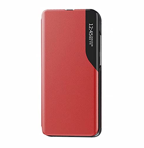 LINER Cover per Xiaomi Redmi Note 10 PRO, Elegante Magnetico Case Traslucido View Standing Flip Custodia Full Body Protettiva Bumper Folio Copertura per Xiaomi Redmi Note 10 PRO - Rosso