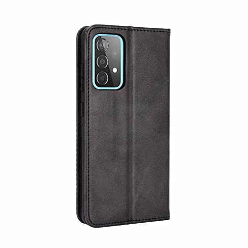 LINER Pelle Cover per Samsung Galaxy A52S 5G / A52 / A52 5G, Retro Design Flip Custodia in PU Leather Premium Portafoglio con Supporto di Stand/Carte Slot/Chiusura Magnetica Antiurto Case - Nero