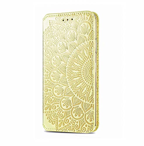 LINER Pelle Cover per Samsung Galaxy M32, Elegante Motivo a Fiore Mandala Design Flip Custodia in PU Premium Portafoglio, Sottile Antiurto Case Cover con Magnetica Adsorbimento - Giallo